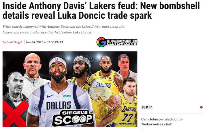 Clutchpoints披露出湖人队交易浓眉哥的部分内情,指出湖人过去几年一直都对浓眉哥的伤病、体能与自我要求感到不满。